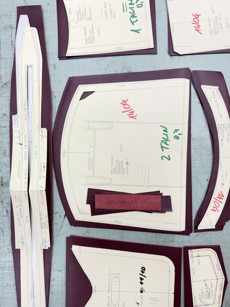 We begin by translating your design concept into detailed sketches and technical drawings of the bag. These are then developed into precise cardboard patterns, which serve as the foundation for cutting the leather and all other materials with absolute accuracy.